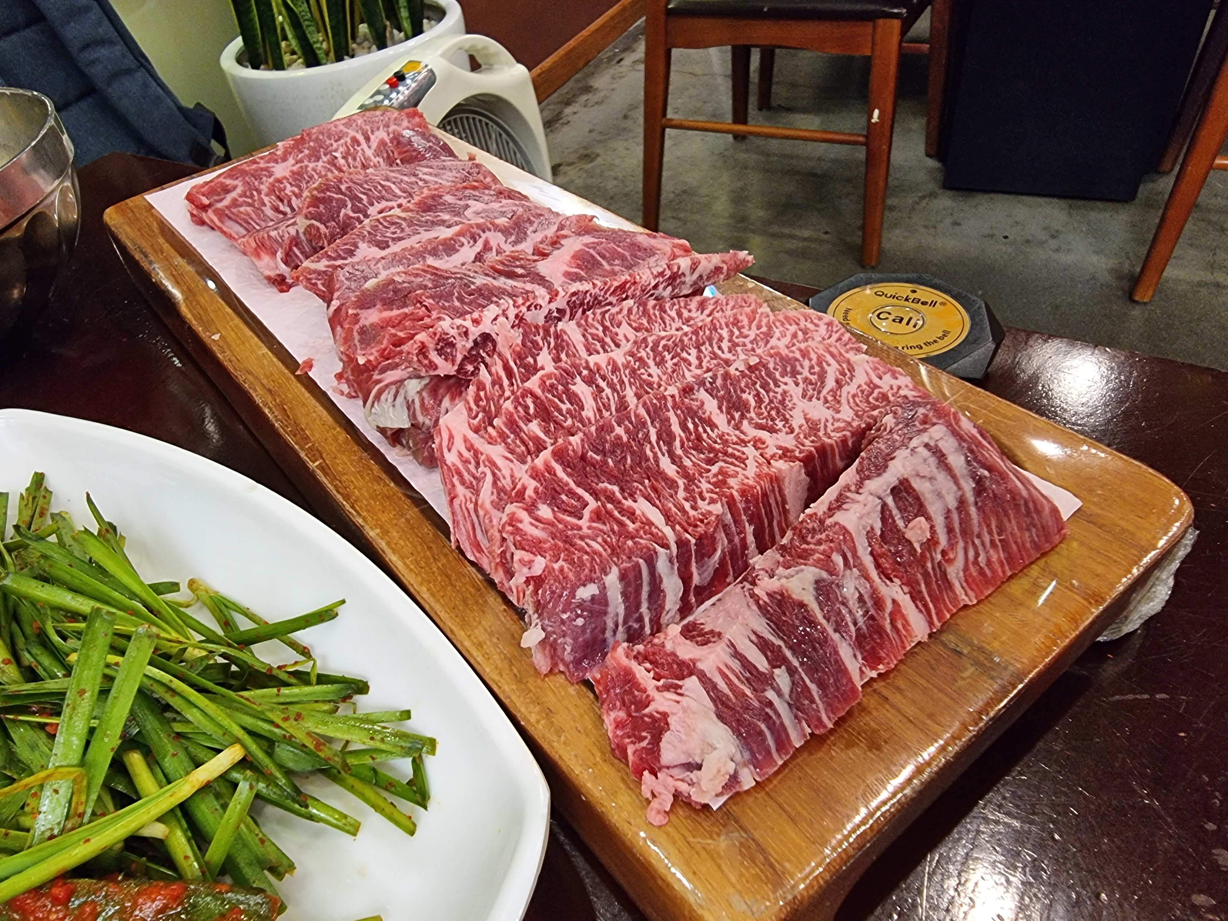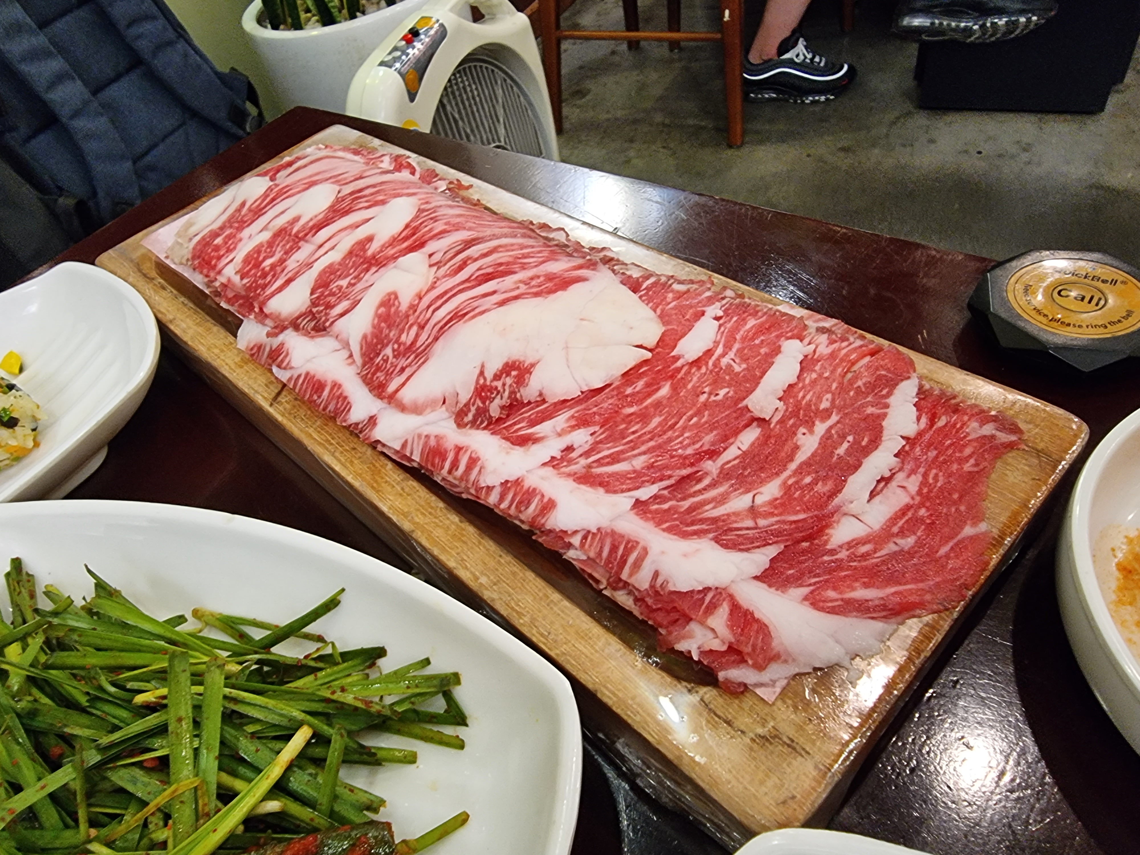 우리나라에서는 차돌박이 부터 줬을텐데 마무리로 차돌박이 까지 잘 먹었네요.