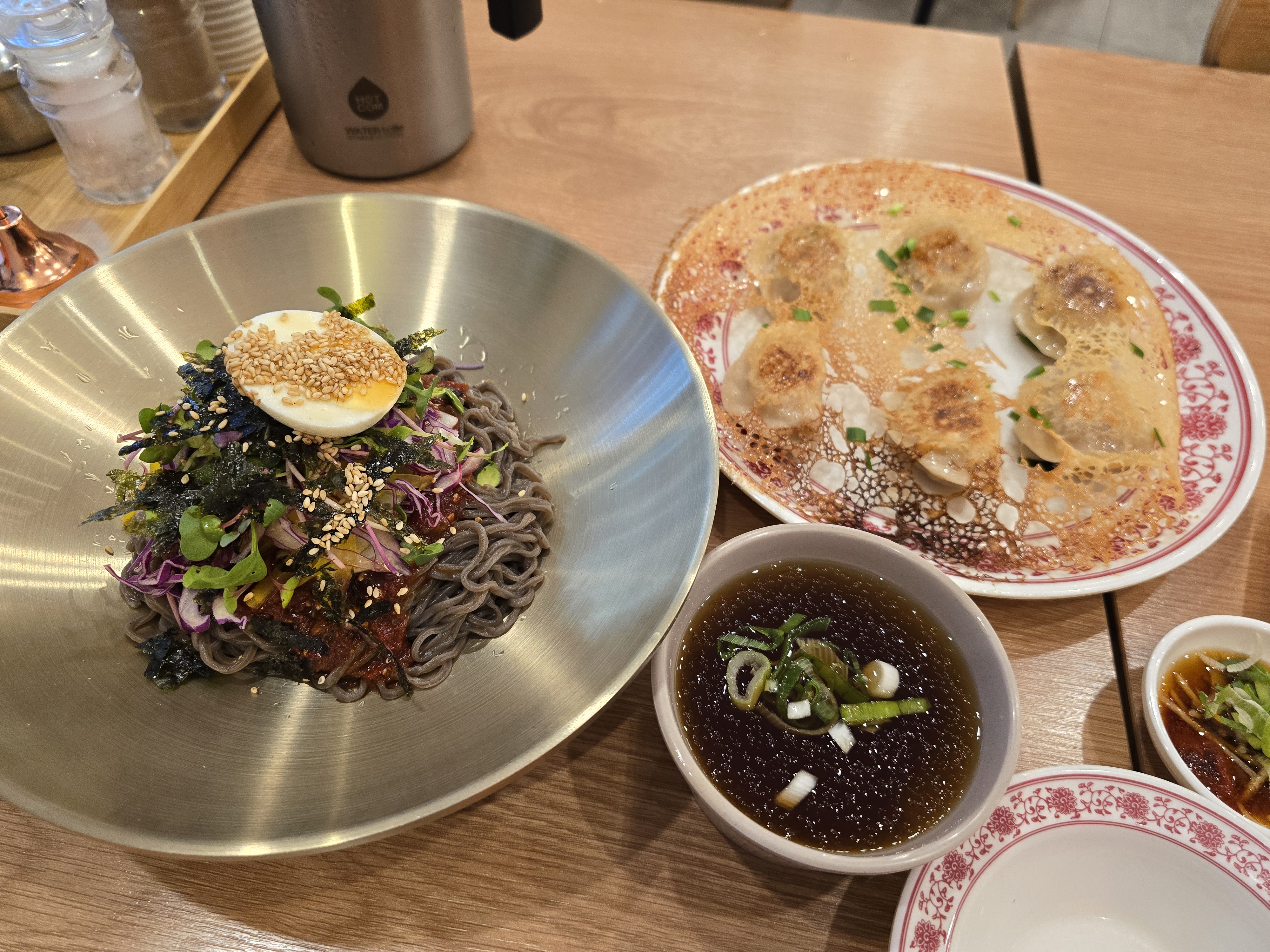 비빔메밀소바와 구복전통만두가 같이 나왔구요.