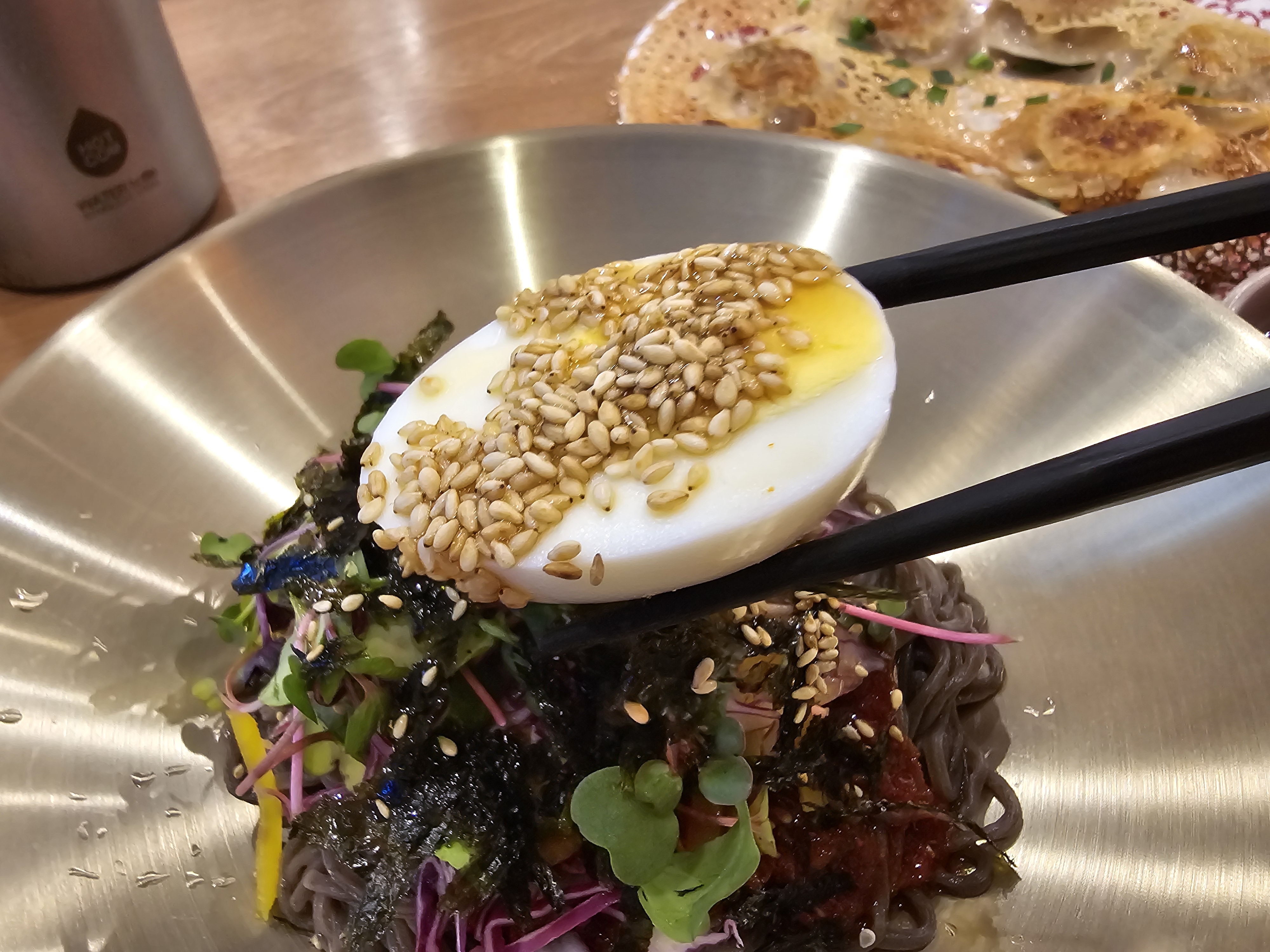 비빔메밀소바는 새싹과 김이 들어가 있구요.