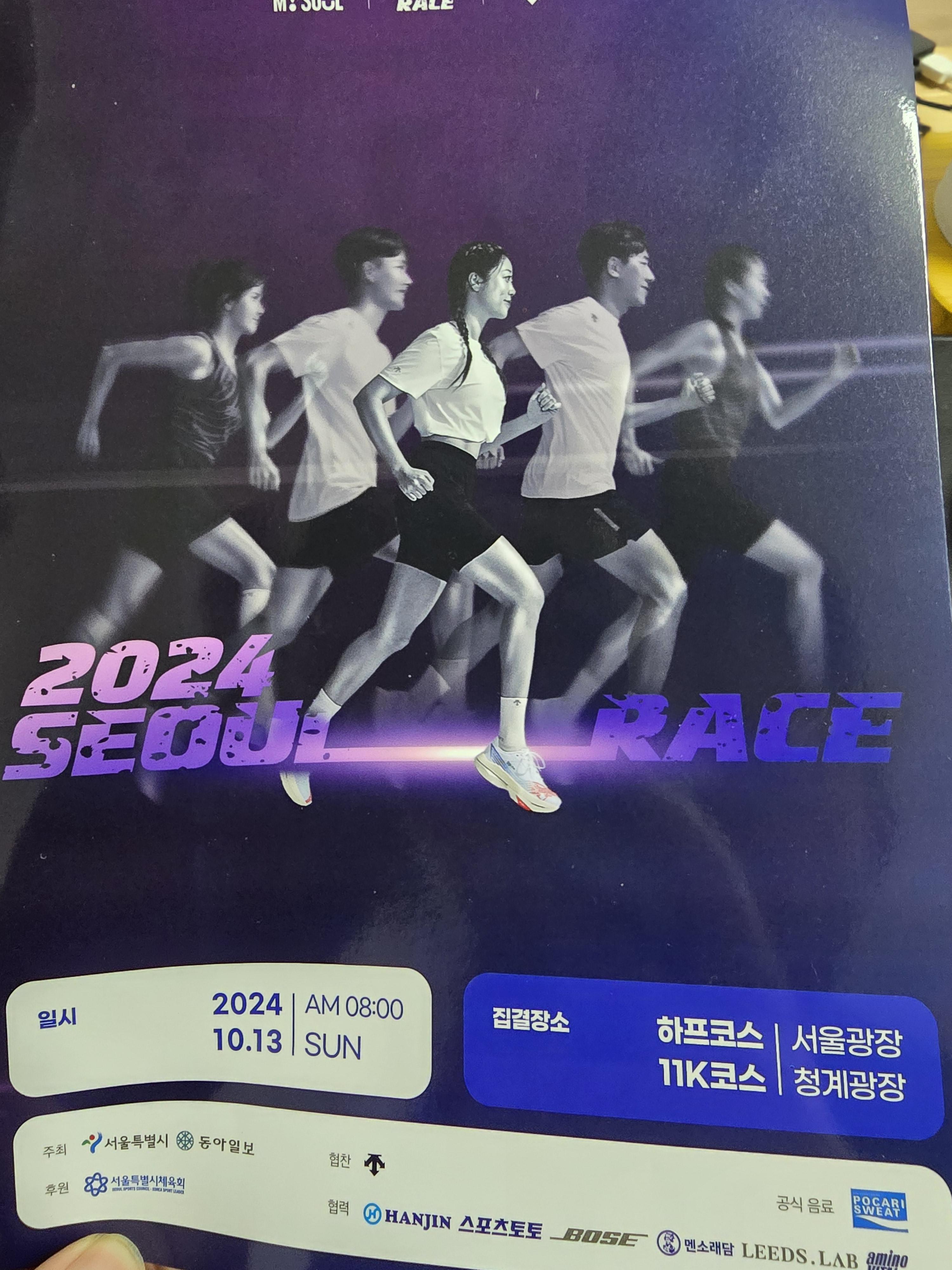 서울레이스 하프마라톤 배번호는 핑크네요.