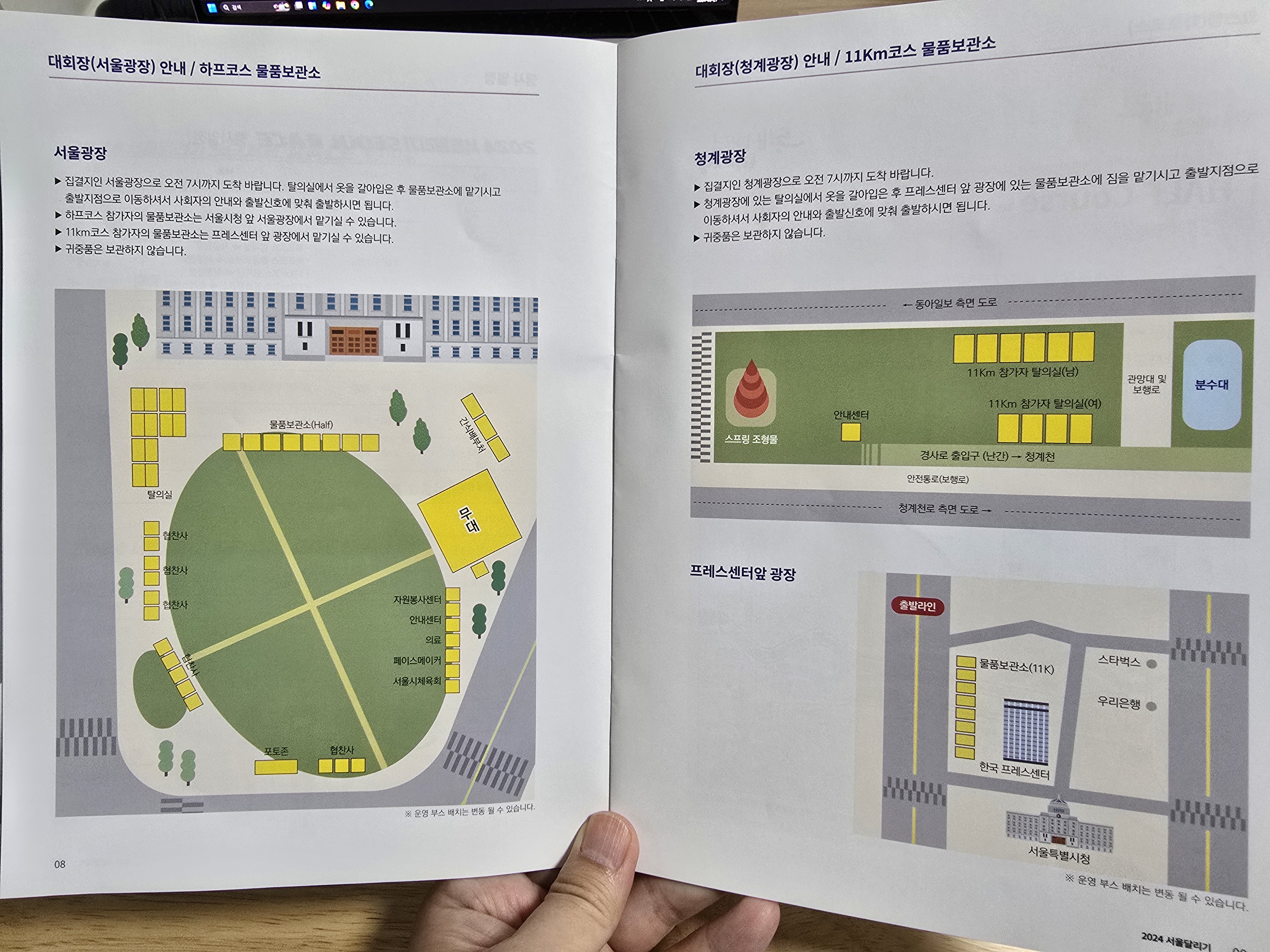 하프와 11K 코스 물품보관소와 탈의실 위치가 다르구요.