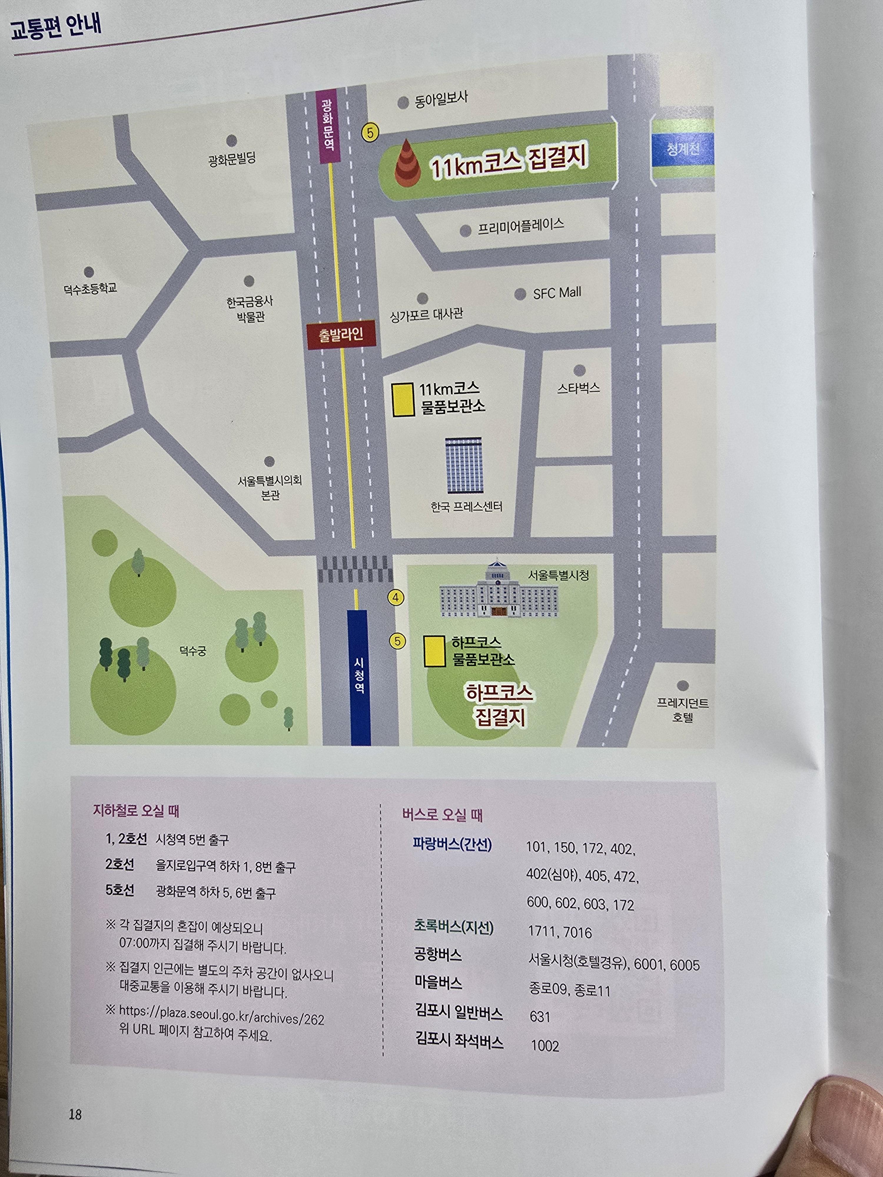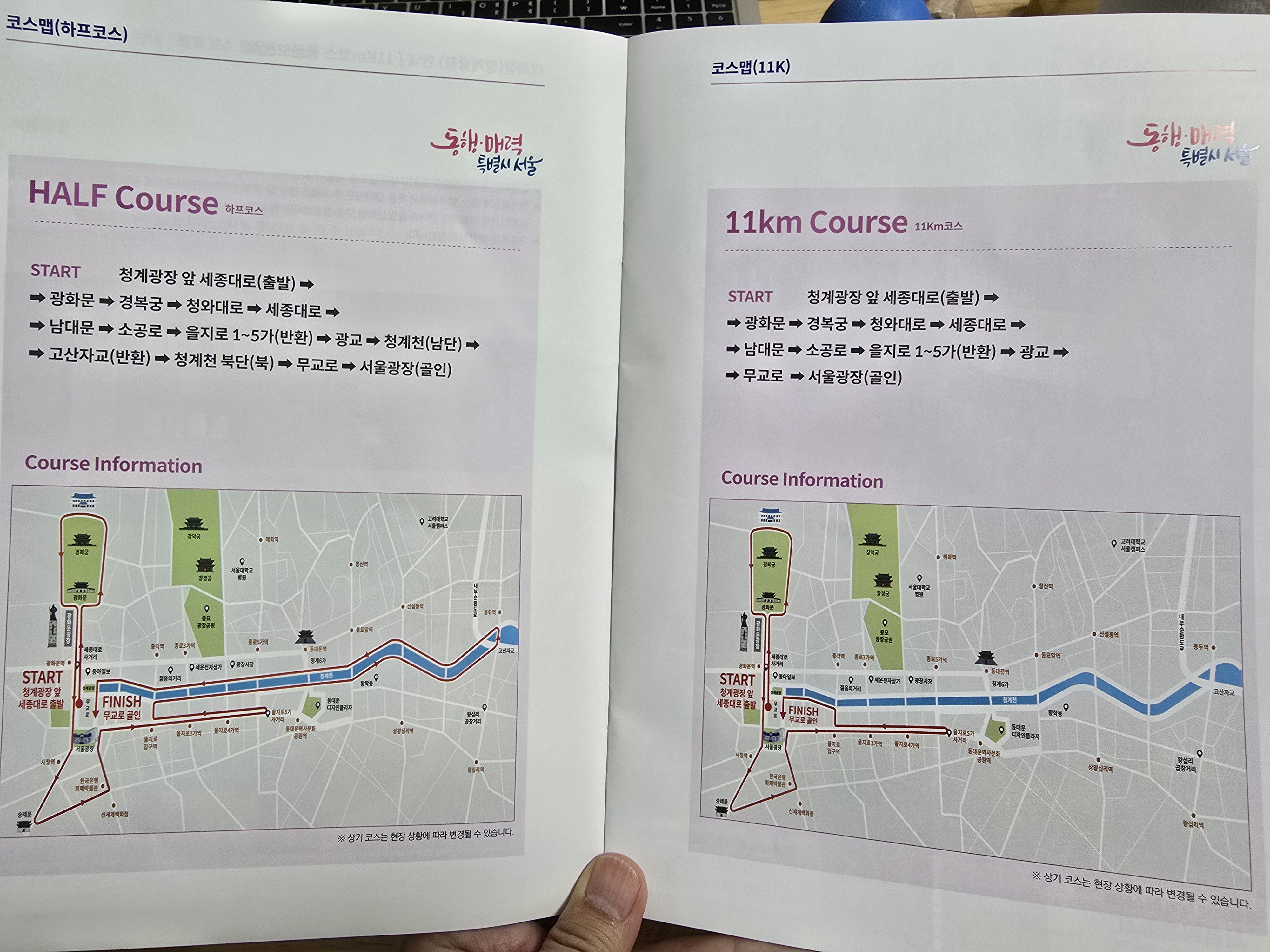 하프와 11K 코스는 청계천을 달리냐 아니냐 차이네요.
