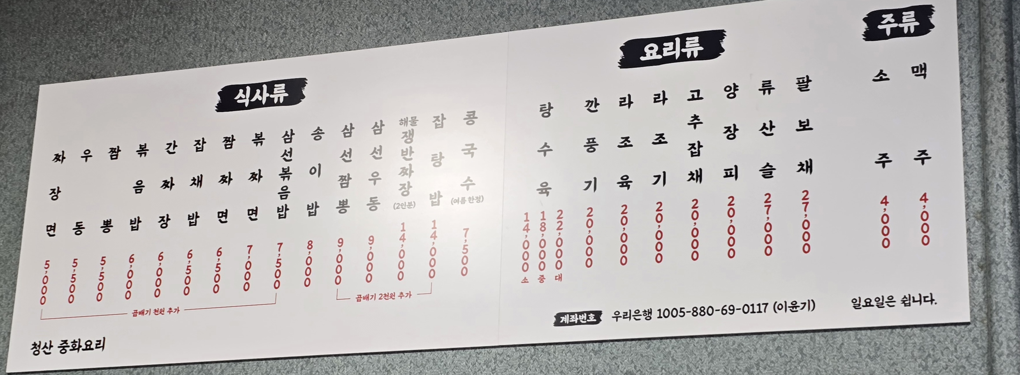 청산중화요리 메뉴 보면, 가격이 참 착한곳이죠.
