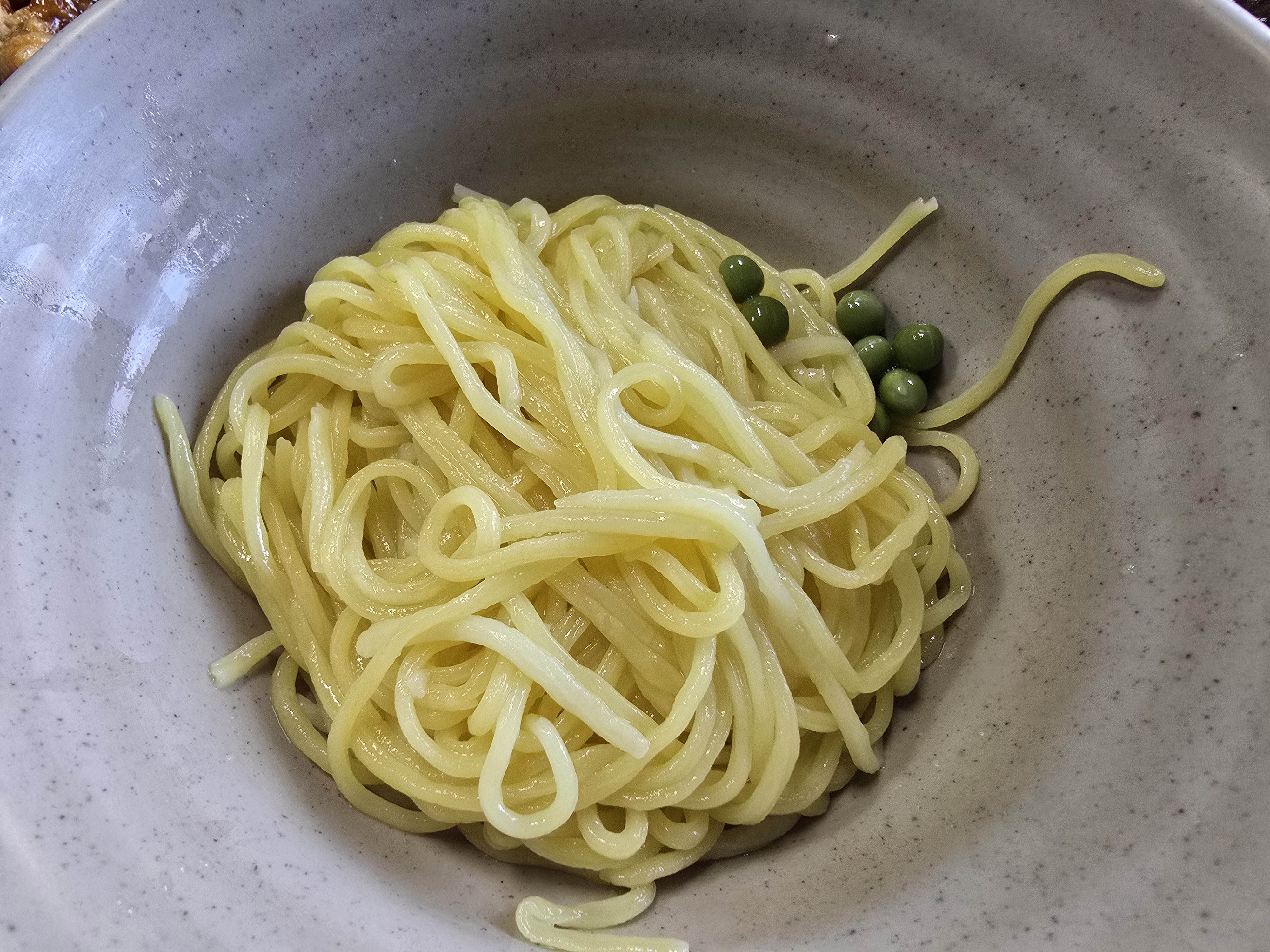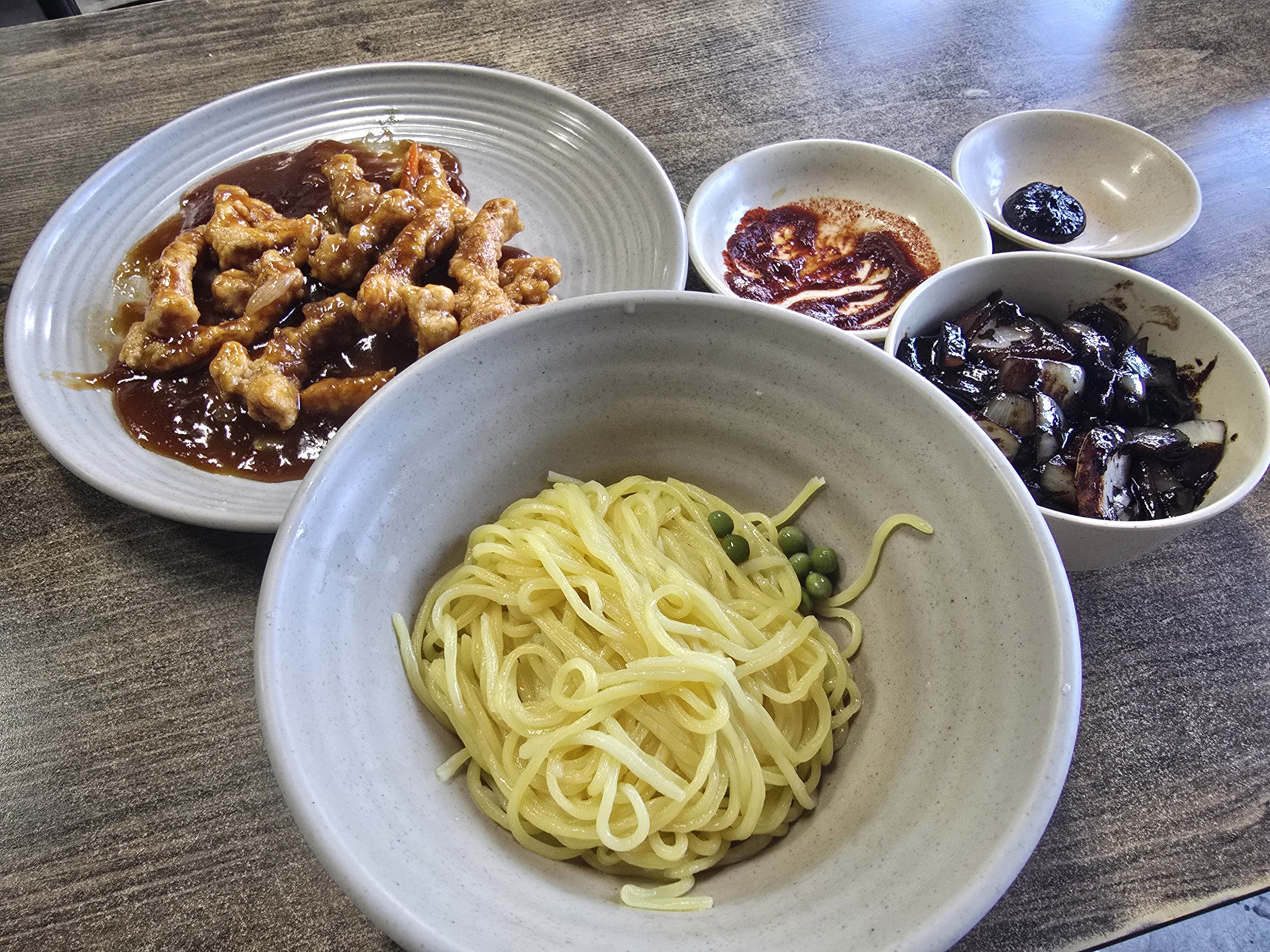 간짜장 면에는 완두콩과 함께 나왔고,