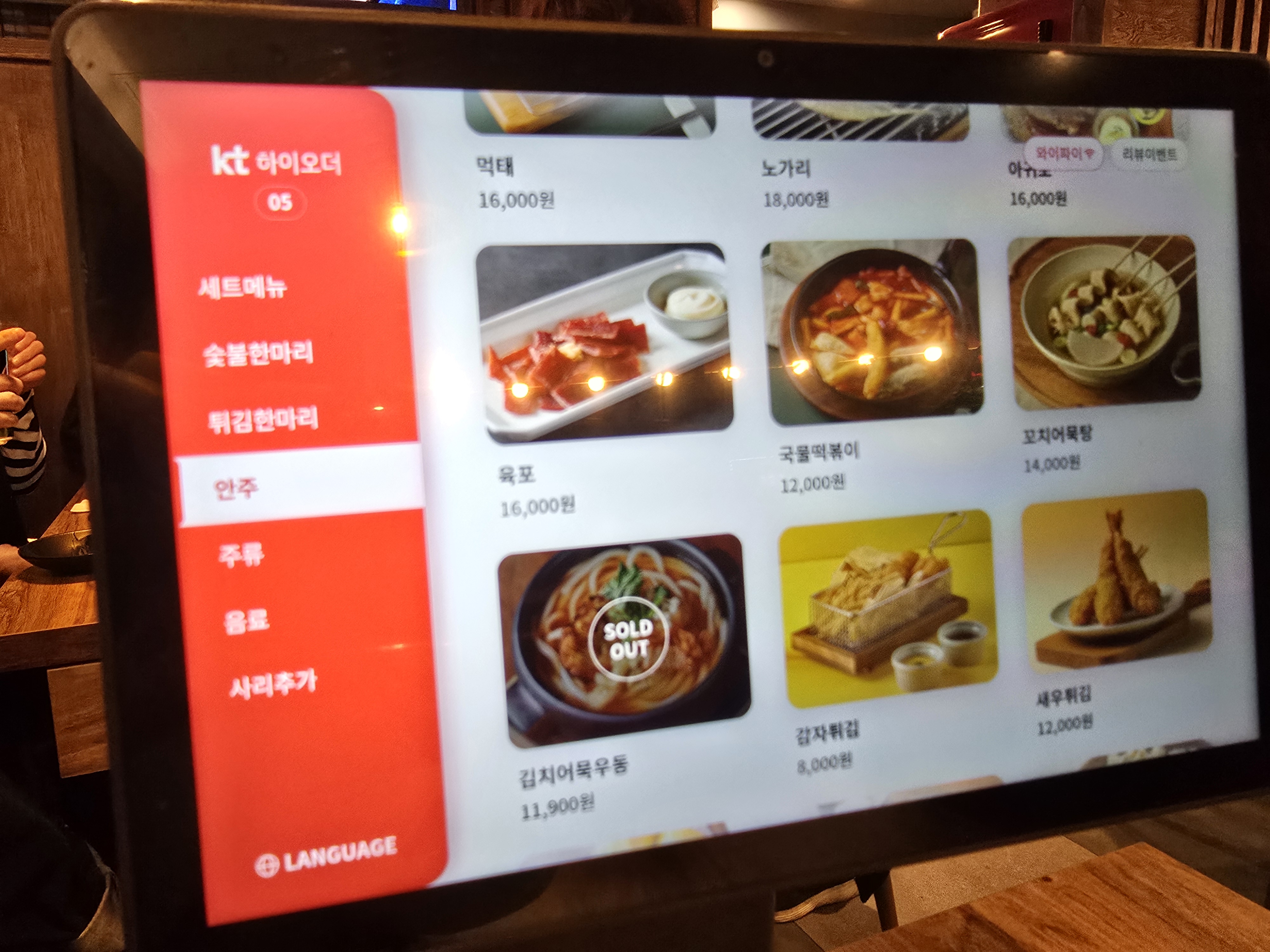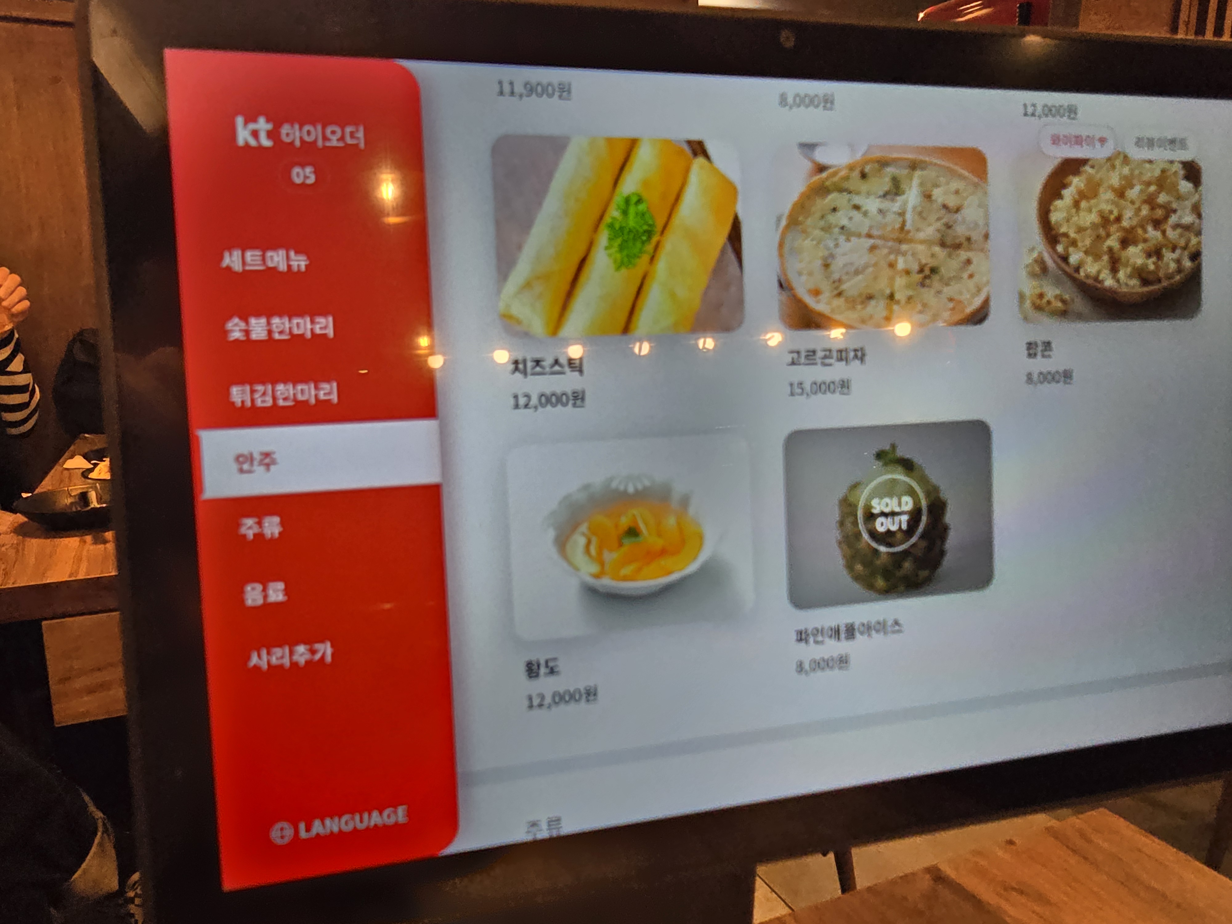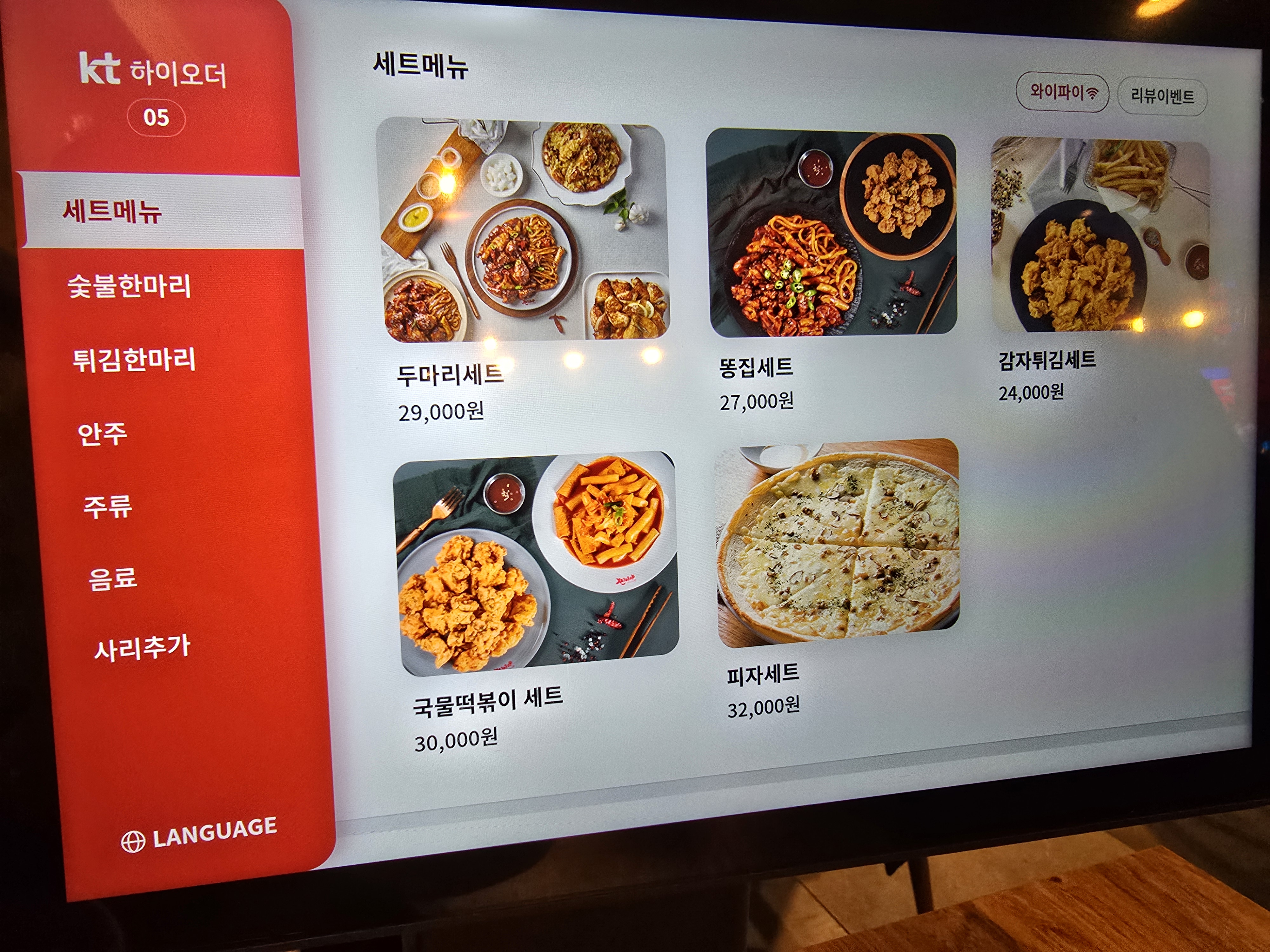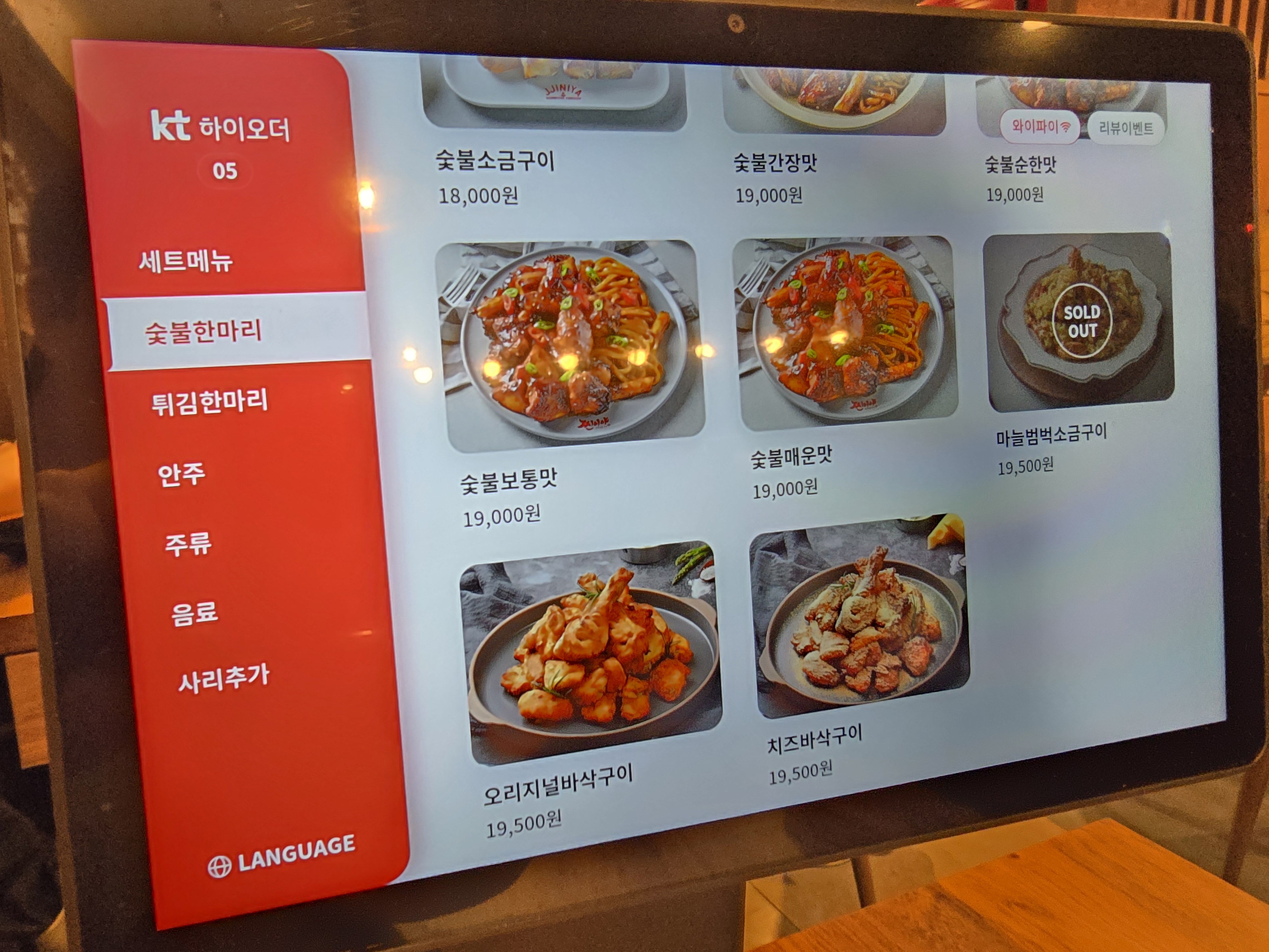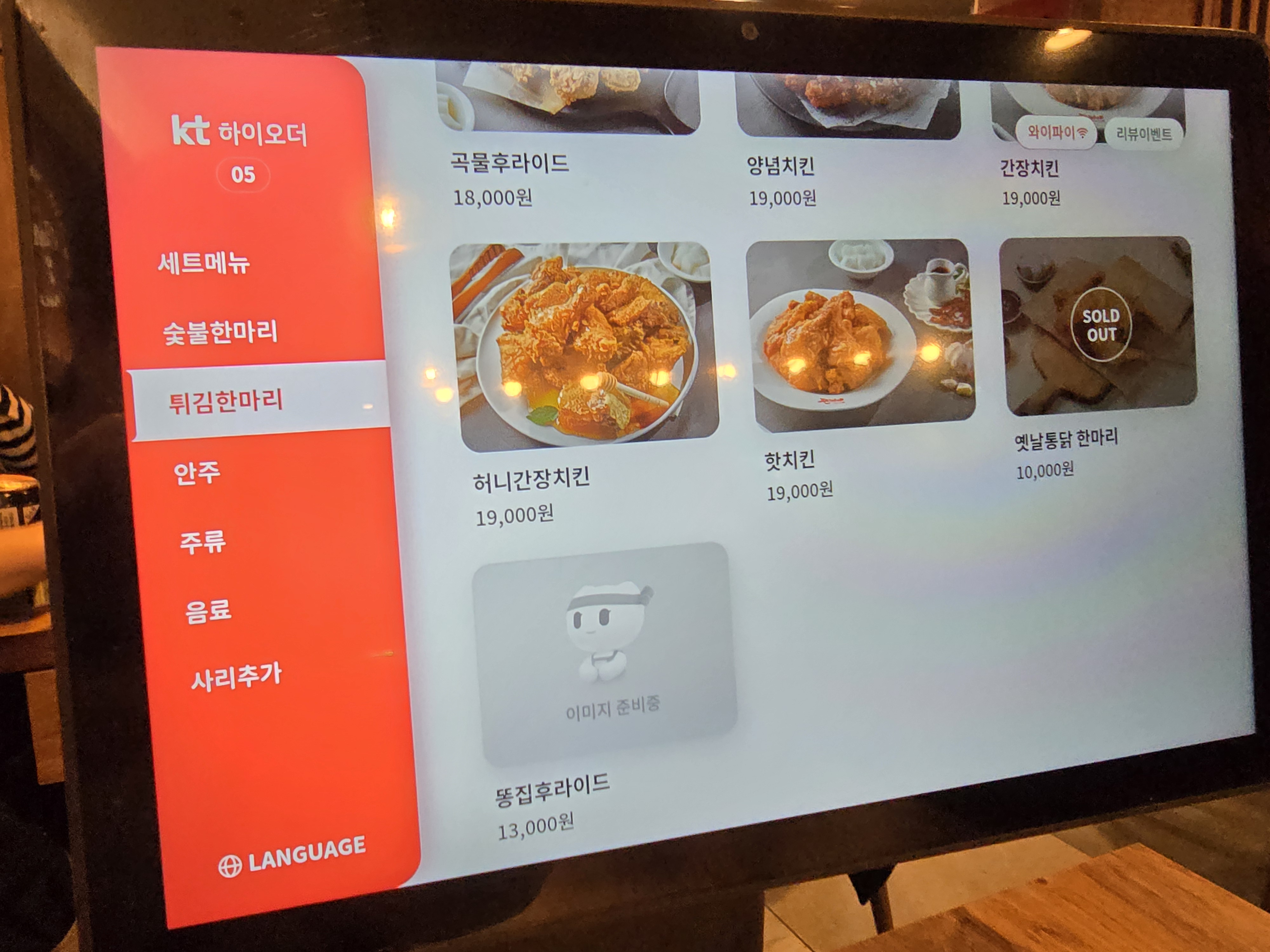 찐이야숯불치킨은 테이블 키오스크로 주문하면 되고,