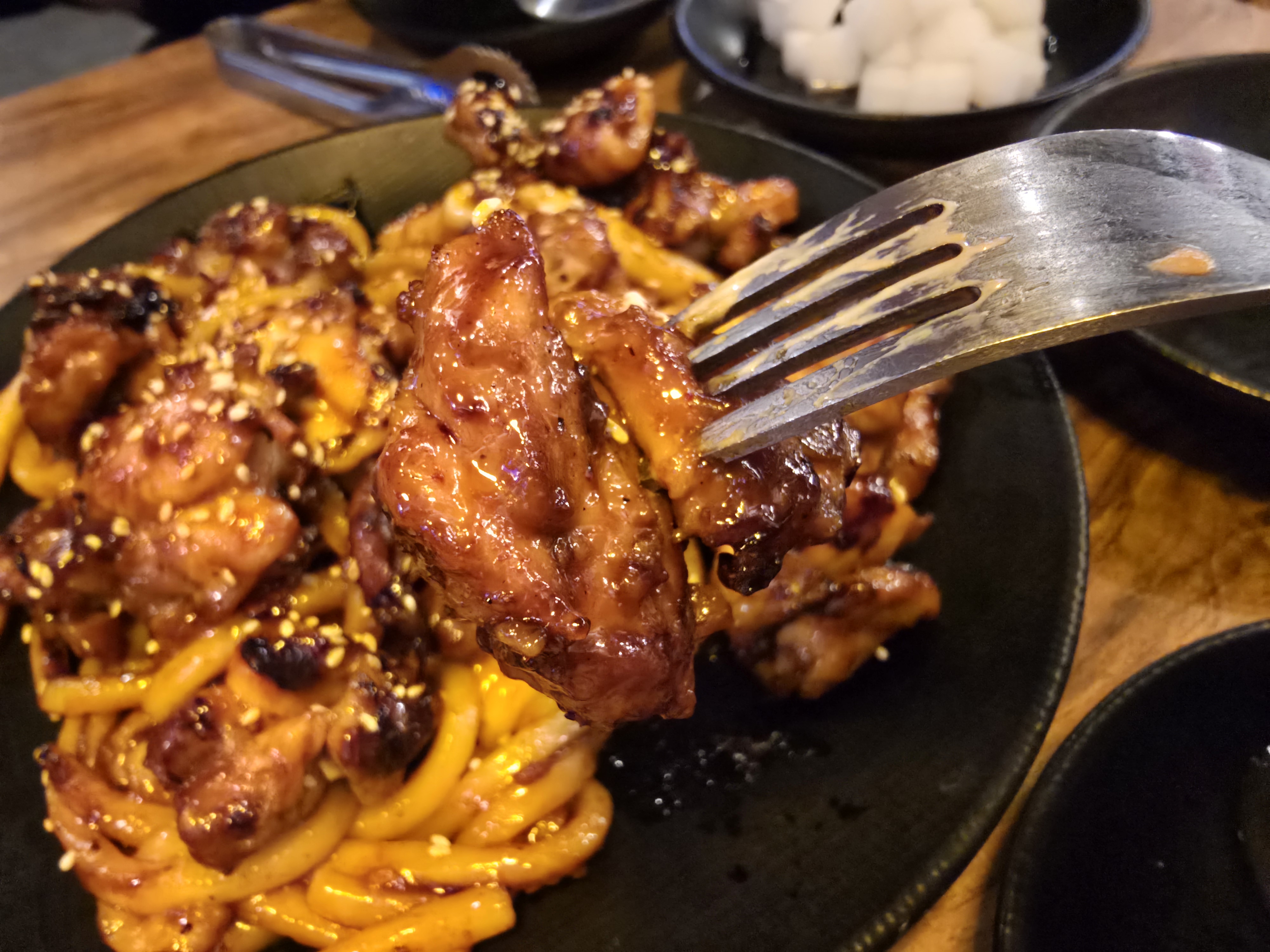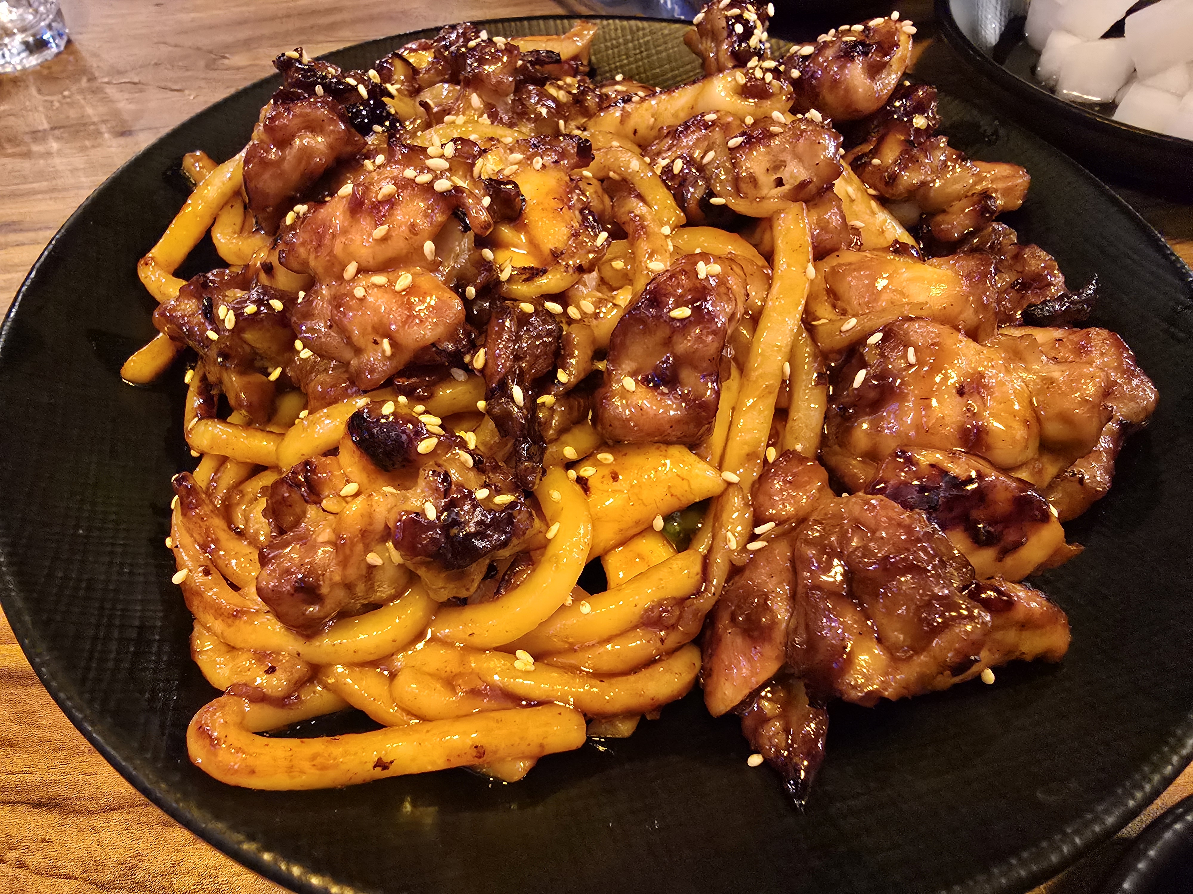 숯불치킨에 우동사리도 잘 어울려서 맛있게 잘 먹었네요.