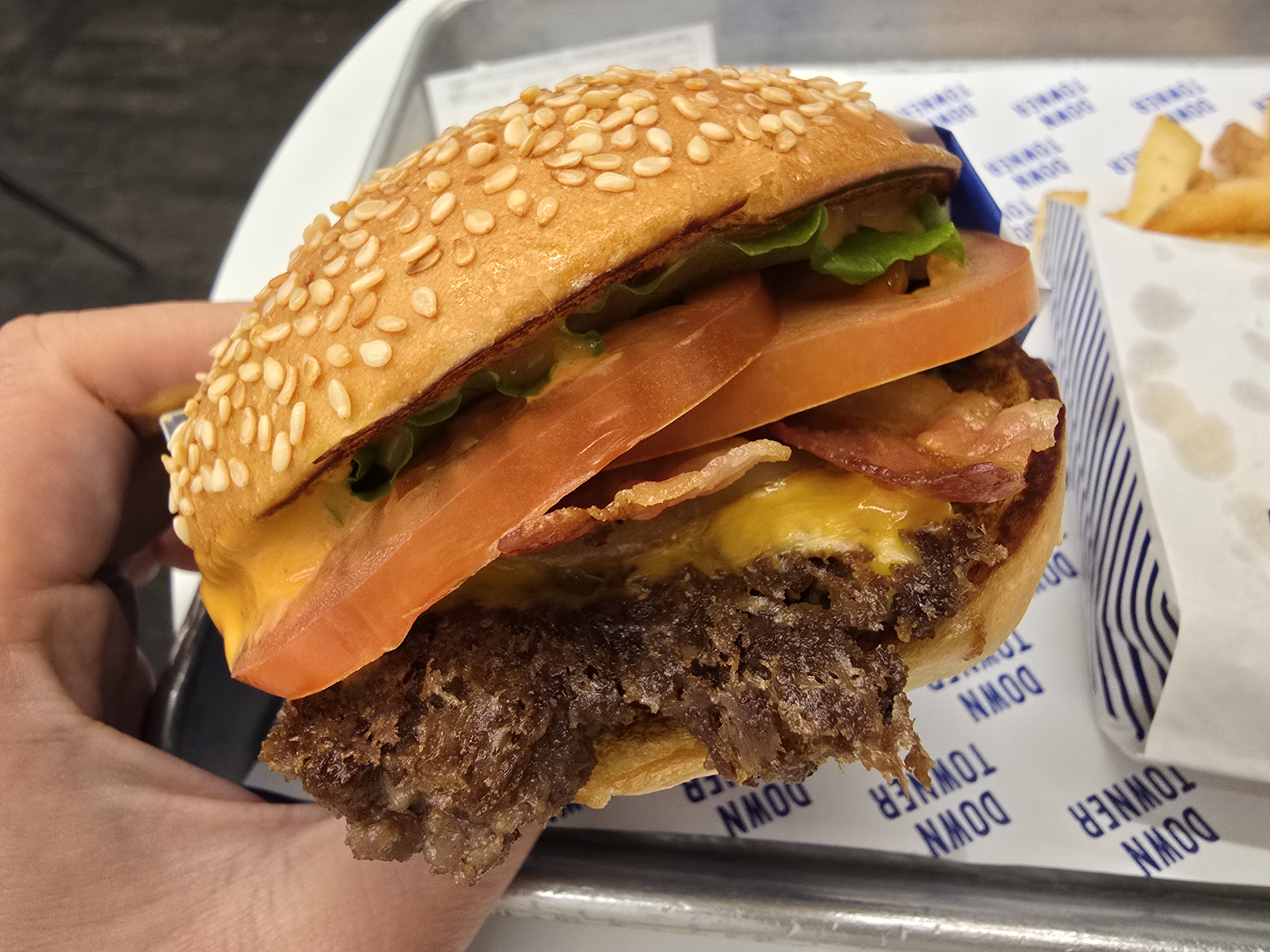 다운타우너 버거는 베이컨 치즈버거 구성이구요.